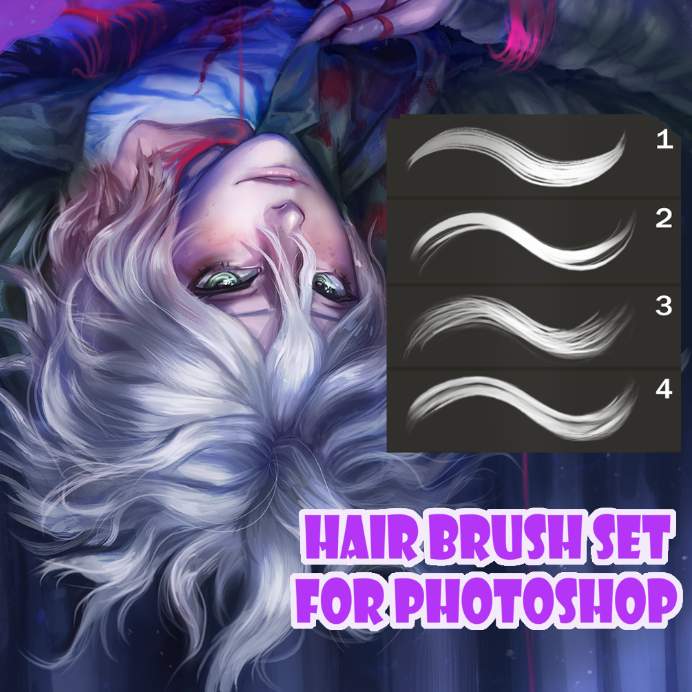 In this package is a set of 4 Photoshop custom, premium brushes which I use to paint hair and fur. These brushes are designed to give a realistic hair look. Use them to add a new layer of detail to your digital art. All the brushes are in one compact file. Add them to your presets and have fun! ^^